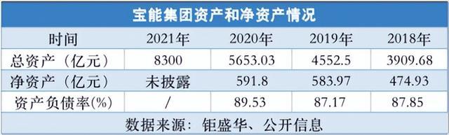 凤凰网《风暴眼》根据总资产和净资产数据估算得出,2018年至2020年,宝能集团的资产负债率分别为87.85%、87.17%和89.53%。截止2020年底,其负债总额已经超过5000亿元。